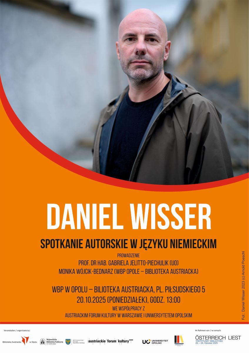 W poniedziałek 20 października Biblioteka Austriacka zaprasza na spotkanie autorskie w j.niemieckim z austriackim pisarzem Danielem Wisserem. Autor przedstawi swoją najnowszą powieść „Smart City“ (2025) oraz wcześniej wydaną powieść „Königin der Berge“ (2018), która ukazała sie w polskim przekładzie pt. „Królowa gór“ w 2023 roku.